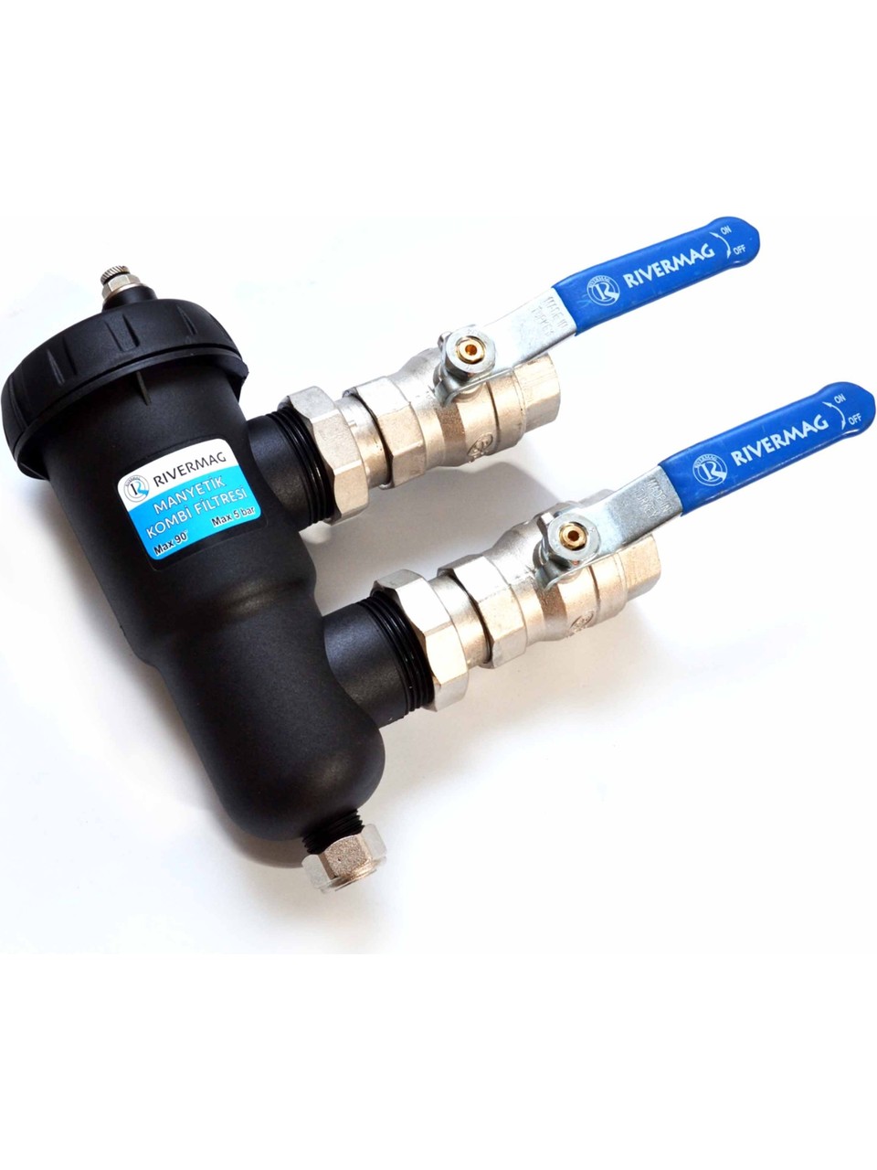 Rivermag Manyetik Filtre, aynı gövde içerisinde yer alan mekanik pislik tutucu ve manyetik pislik tutucu olmak üzere iki kısımdan oluşur. Diğer manyetik filtrelerden farklı olarak hava tahliye purjörü ile donatılmıştır.